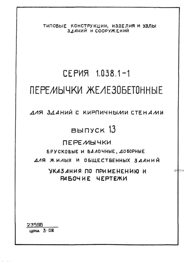 | Название стандарта | Перемычки железобетонные для зданий с кирпичными стенами. |