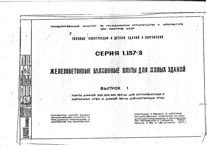 | Название стандарта | Железобетонные балконные плиты для жилых зданий. |