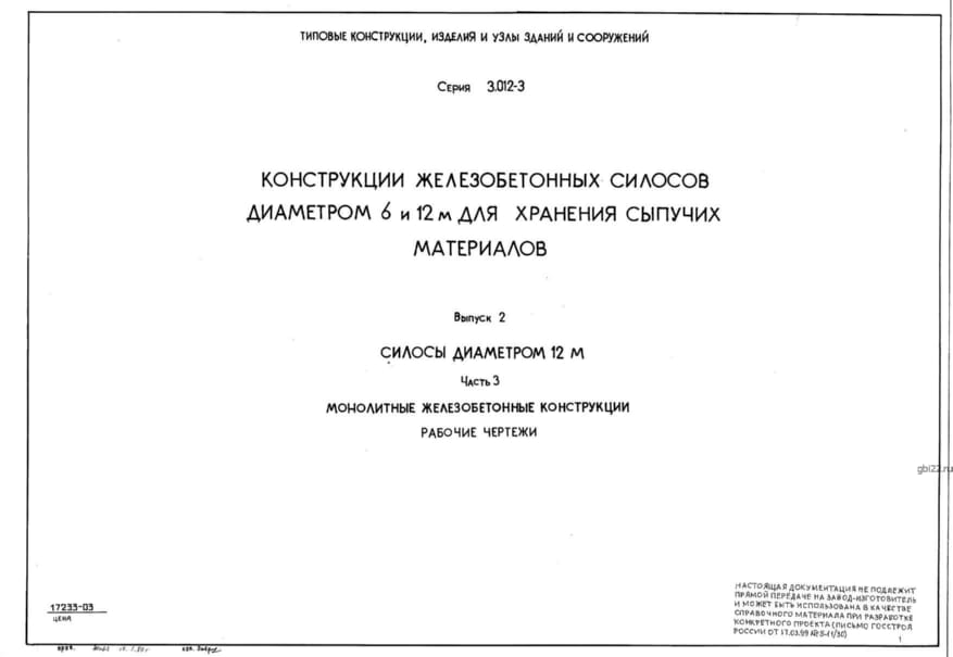 | Название стандарта | Конструкции железобетонных силосов диаметром 6 и 12 м для хранения сыпучих материалов. |