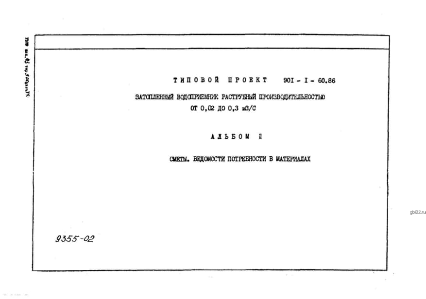 | Название стандарта | Затопленный водоприемник раструбный производительностью от 0,02 до 0,3 м3/с. |