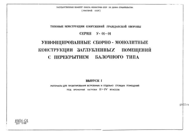 | Название стандарта | Унифицированные сборно-монолитные конструкции заглубленных помещений с перекрытием балочного типа. |