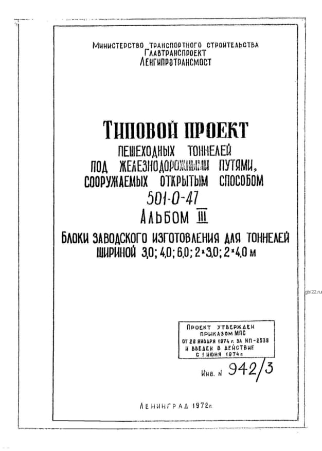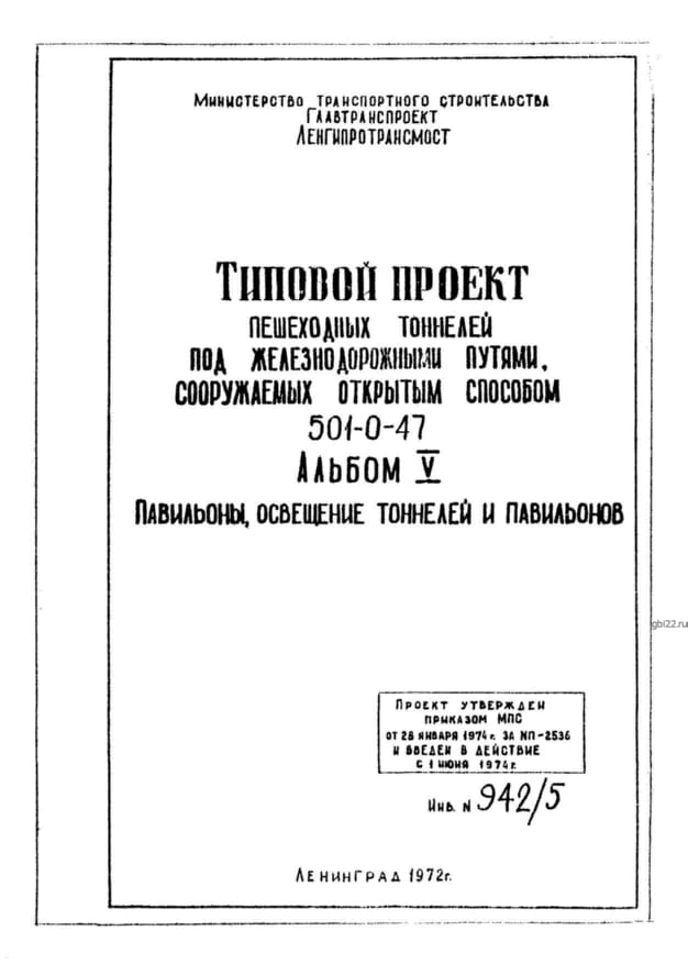 | Название стандарта | Типовой проект пешеходных тоннелей под железнодорожными путями, сооружаемых открытым способом. |