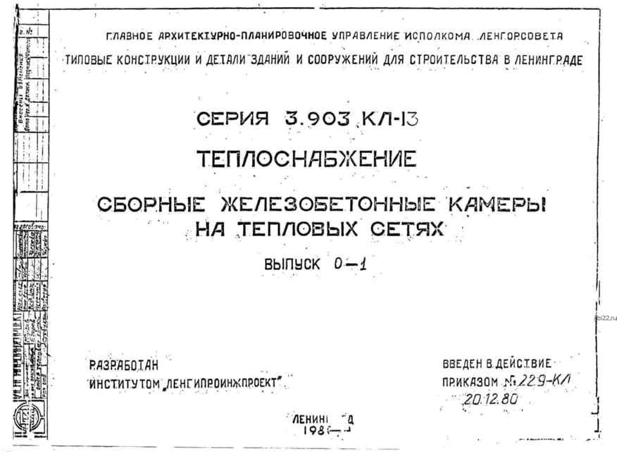 | Название стандарта | Теплоснабжение. Сборные железобетонные камеры на тепловых сетях. |