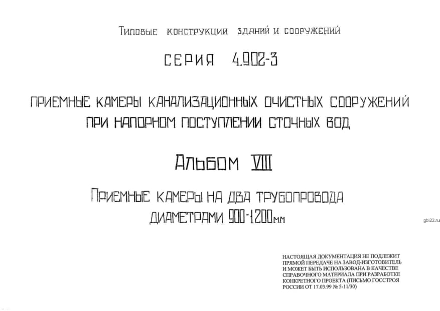 | Название стандарта | Приемные камеры канализационных очистных сооружений при напорном поступлении сточных вод. |