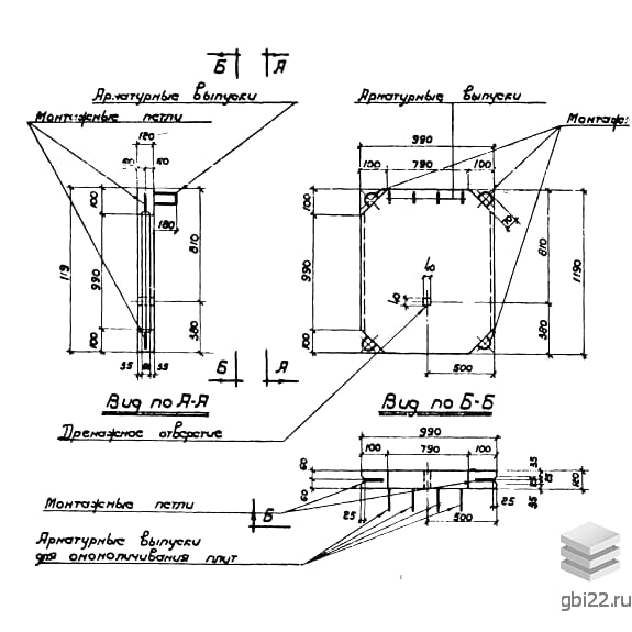 Изделие имеет прямоугольную форму со скошенными углами, что придает ему восьмиугольный контур. Для удобства монтажа предусмотрены 4 петли из стали класса AI (?10 мм). Верхняя часть оснащена арматурными выпусками, а в конструкции имеется дренажное отверстие.