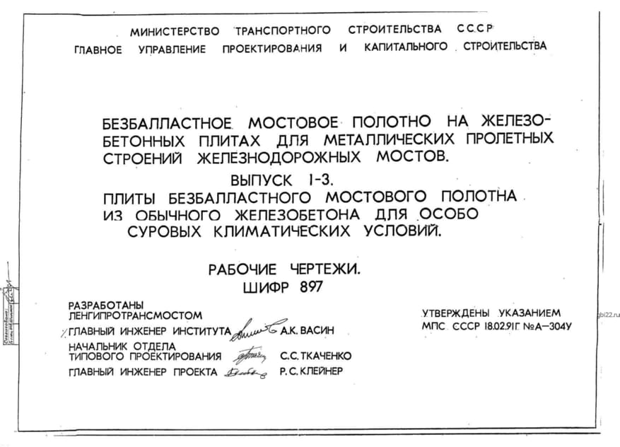 | Название стандарта | Безбалластное мостовое полотно на железобетонных плитах для металлических пролетных строений железнодорожных мостов. |