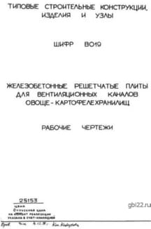 | Название стандарта | Железобетонные решетчатые плиты для вентиляционных каналов овоще-картофелехранилищ. Рабочие чертежи. |