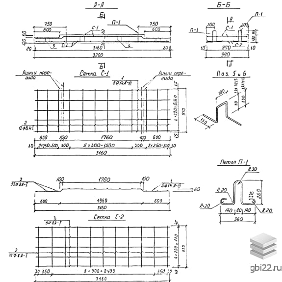 Изделие представляет собой монолитный железобетонный элемент, изготовленный из высокопрочного бетона с армированием стальными стержнями. Для удобства монтажа плита оснащена специальными петлями.