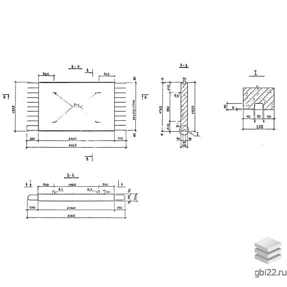 Монолитная конструкция из тяжелого бетона (от М200) с армированием стальными стержнями класса АI-АIII. Оснащена монтажными петлями для удобства перемещения.