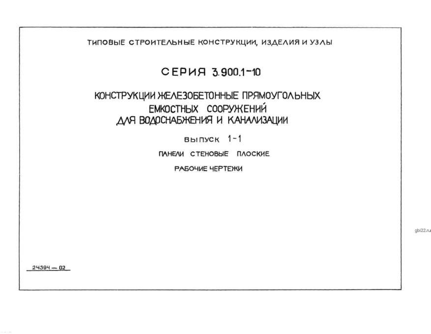 | Название стандарта | Конструкции железобетонные прямоугольные емкостных сооружений для водоснабжения и канализации. |