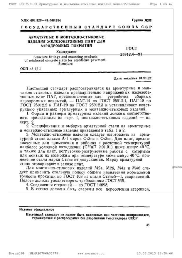 | Название стандарта | Плиты железобетонные предварительно напряженные ПАГ для аэродромных покрытий. Технические условия. |