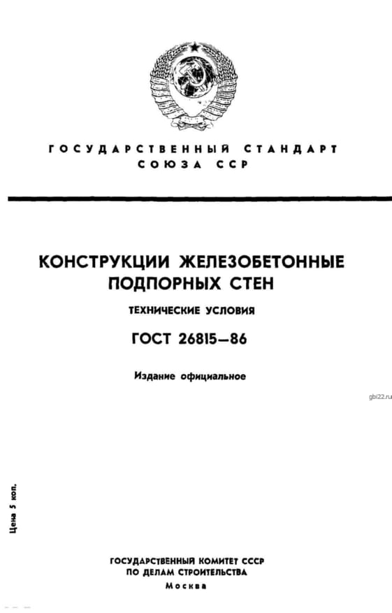 | Название стандарта | Конструкции железобетонные подпорных стен. Технические условия. |