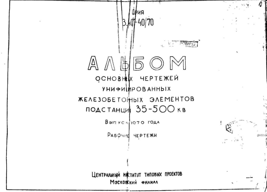| Название стандарта | Основные чертежи унифицированных железобетонных элементов подстанций 35-500кв. |