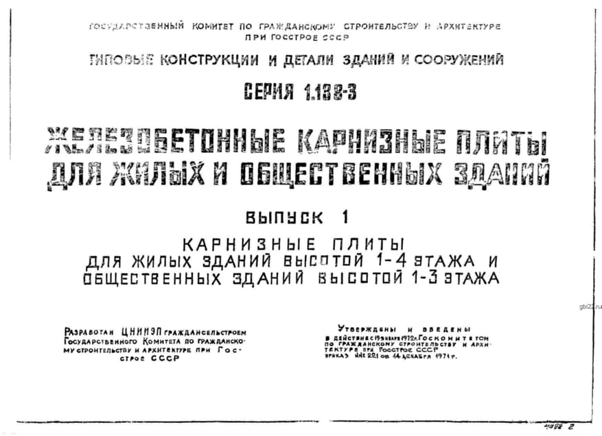 | Название стандарта | Железобетонные карнизные плиты для жилых и общественных зданий. |
