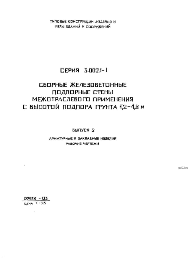 | Название стандарта | Сборные железобетонные подпорные стены межотраслевого применения с высотой подпора грунта 1,2–4,8 м. |