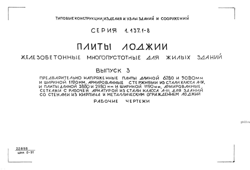 | Название стандарта | Плиты лоджий железобетонные многопустотные для жилых зданий. |