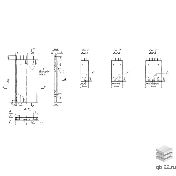 Плита представляет собой прямоугольный железобетонный элемент с арматурными выпусками и закладными деталями для соединения с другими конструкциями.