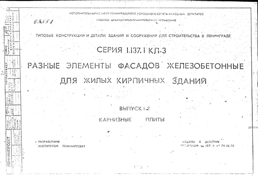 | Название стандарта | Разные элементы фасадов железобетонные для жилых кирпичных зданий. |