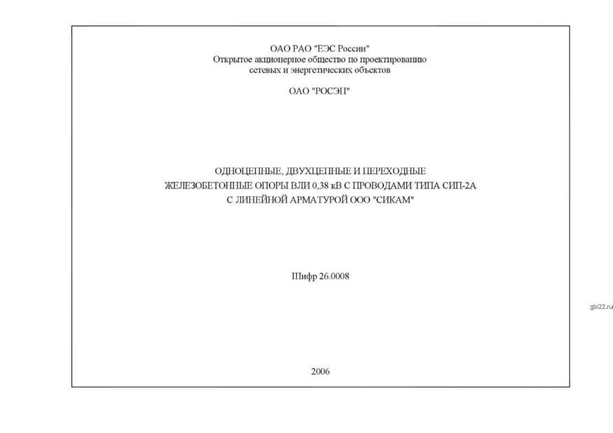 | Название стандарта | Одноцепные, двухцепные и переходные железобетонные опоры ВЛИ 0,38кВ с проводами типа СИП-2А с линейной арматурой. |