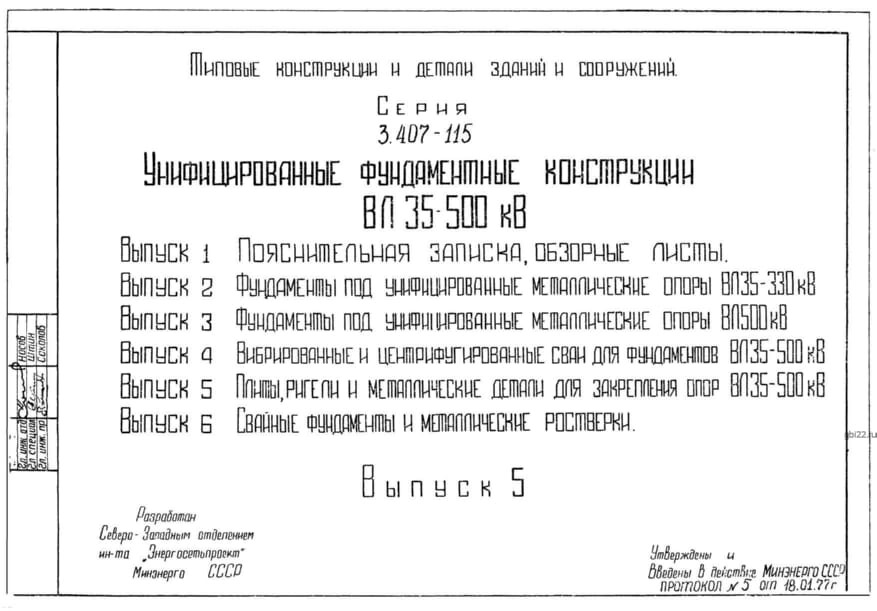 | Название стандарта | Унифицированные фундаментные конструкции ВЛ 35 - 500 кВ. |