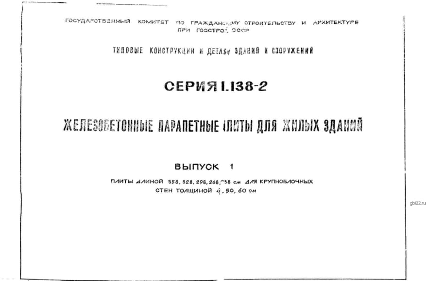 | Название стандарта | Железобетонные парапетные плиты для жилых зданий. |