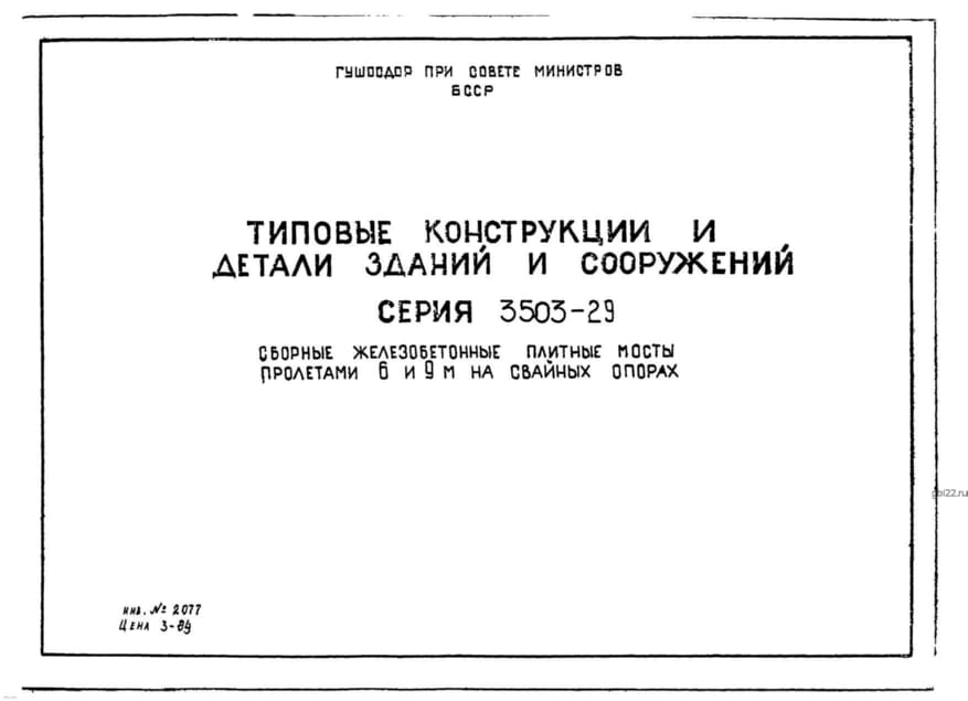 | Название стандарта | Сборные железобетонные плитные мосты пролетами 6 и 9 м на свайных опорах. |