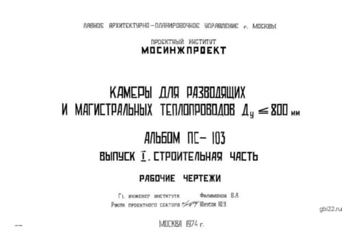 | Название стандарта | Камеры для разводящих и магистральных теплопроводов Ду <= 800 мм. |