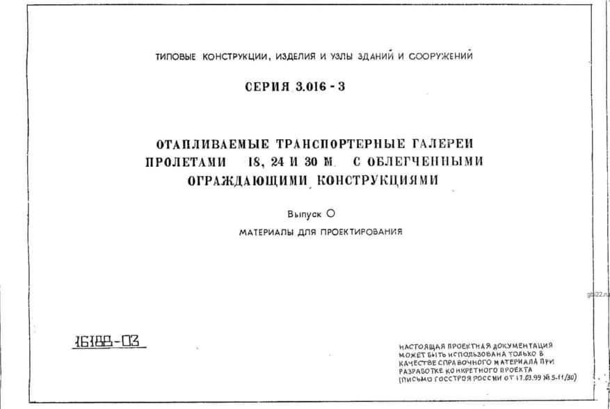 | Название стандарта | Отапливаемые транспортные галереи пролетами 18, 24 и 30 м с облегченными ограждающими конструкциями. |