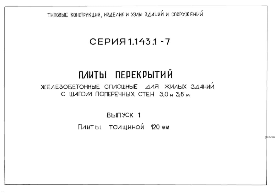 | Название стандарта | Плиты перекрытий железобетонные сплошные для жилых зданий с шагом поперечных стен 3,0 и 3,6 м. |