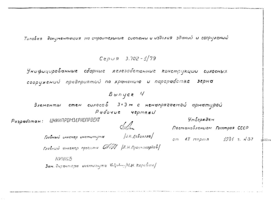 | Название стандарта | Унифицированные сборные железобетонные конструкции силосных сооружений предприятий по хранению и переработке зерна. |