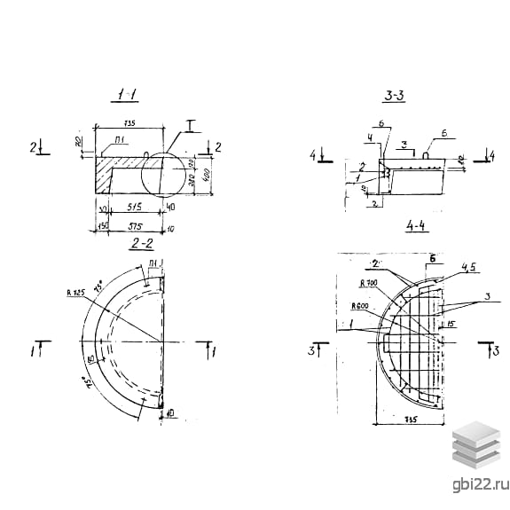 Сборные железобетонные конструкции элементов колодцев на подземных трубопроводах. Рабочие чертежи.