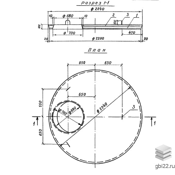 Плиты перекрытия колодцев ПП 20-2-1 в размеры: длина, мм.: 2240, ширина, мм.: 2240, высота, мм.: 100, вес, кг.: 875, марка бетона: М200. Изделия относятся к категории Элементы колодца-Плиты перекрытия колодцев и изготавливаются по технической документации согласно серия 3.820-23