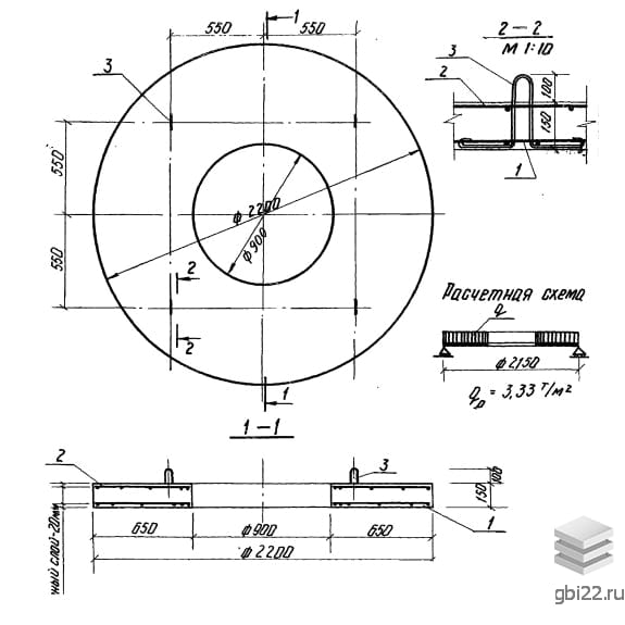 Плиты перекрытия колодцев ПП 20-3-1 размеры: длина, мм.: 2200, ширина, мм.: 2200, высота, мм.: 150, вес, кг.: 1175, марка бетона: М200. Изделия относятся к категории Элементы колодца-Плиты перекрытия колодцев и изготавливаются по технической документации согласно серия 3.820-23