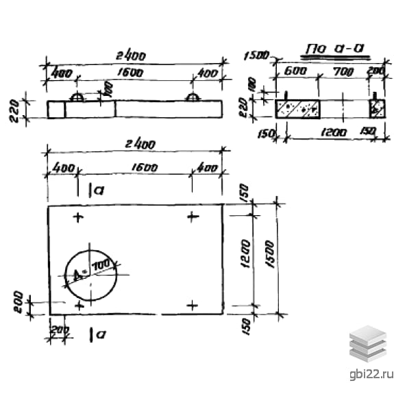 Плиты перекрытия колодцев ПП 24-15-2 размеры: длина, мм.: 2400, ширина, мм.: 1500, высота, мм.: 220, вес, кг.: 1795, марка бетона: М300. Изделия относятся к категории Элементы колодца-Плиты перекрытия колодцев и изготавливаются по технической документации согласно ТП 902-9-1