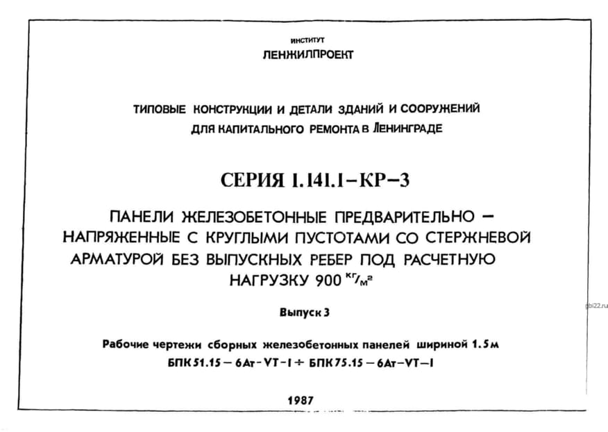 | Название стандарта | Панели железобетонные предварительно-напряженные с круглыми пустотами со стержневой арматурой с выпускными ребрами под расчетную нагрузку 900 кг/кв. м; 1100 кг/кв. м. |