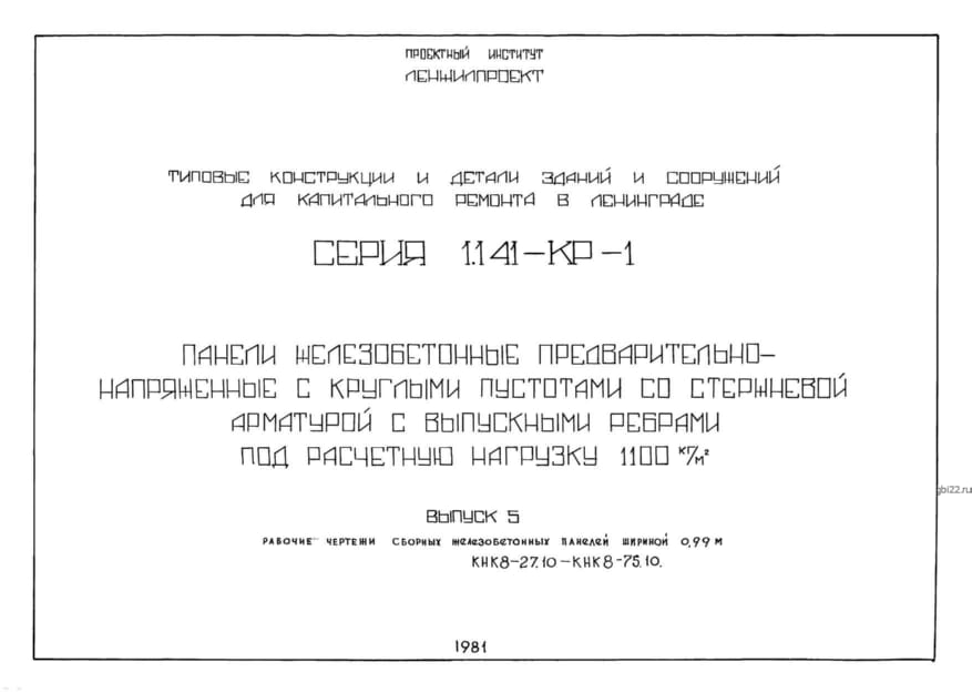 | Название стандарта | Панели железобетонные предварительно-напряженные с круглыми пустотами со стержневой арматурой. С выпускными ребрами под расчетную нагрузку 900 кг/кв. м. |