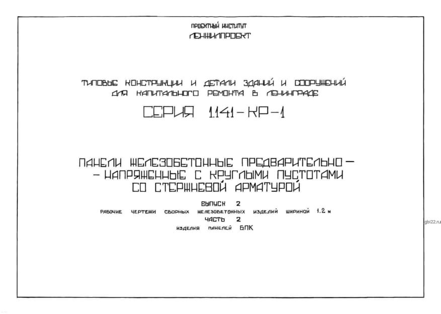 | Название стандарта | Панели железобетонные предварительно-напряженные с круглыми пустотами со стержневой арматурой. С выпускными ребрами под расчетную нагрузку 900 кг/кв. м. |