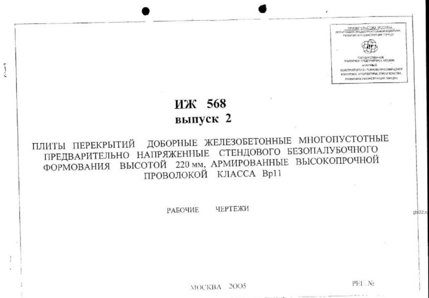 | Название стандарта | Плиты перекрытия железобетонные многопустотные предварительно напряженные стендового безопалубочного формования высотой 220 мм, шириной 1200 мм, армированные высокопрочной проволокой класса Вр-II. |