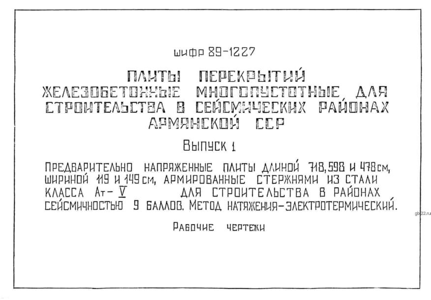 | Название стандарта | Плиты перекрытий железобетонные многопустотные для строительства в сейсмических районах Армянской ССР. |