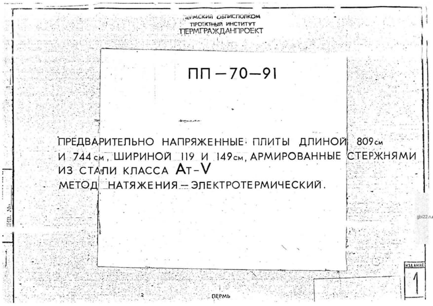 | Название стандарта | Предварительно напряженные плиты длиной 809см и 744см, шириной 119 и 149см, армированные стержнями из стали класса Ат-V. |