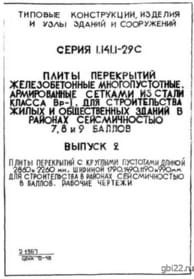 | Название стандарта | Плиты перекрытий железобетонные многопустотные, армированные сетками из стали класса Вр-I, для строительства жилых и общественных зданий в районах сейсмичностью 7, 8 и 9 баллов. |
