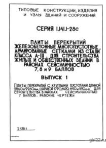 | Название стандарта | Плиты перекрытий железобетонные многопустотные, армированные сетками из стали класса А-III, для строительства жилых и общественных зданий в районах сейсмичностью 7, 8 и 9 баллов. |