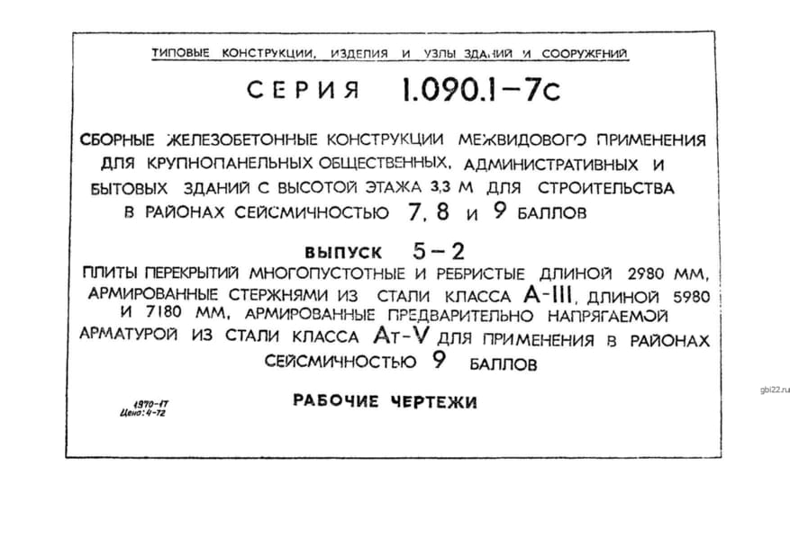 | Название стандарта | Сборные железобетонные конструкции межвидового применения для крупнопанельных общественных, административных и бытовых зданий с высотой этажа 3,3 м для строительства в районах сейсмичностью 7, 8, 9 баллов. |