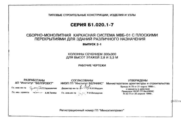 | Название стандарта | Сборно-монолитная каркасная система МВБ-01 с плоскими перекрытиями для зданий различного назначения. |