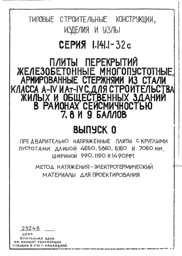 | Название стандарта | Плиты перекрытий железобетонные многопустотные, армированные стержнями из стали класса А-IV и Ат-IVC, для строительства жилых и общественных зданий в районах сейсмичностью 7, 8, 9 баллов. |