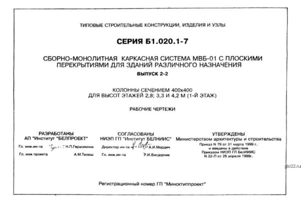 | Название стандарта | Сборно-монолитная каркасная система МВБ-01 с плоскими перекрытиями для зданий различного назначения. |