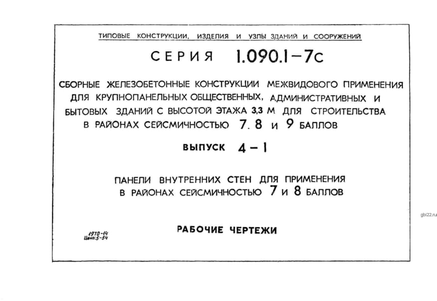 | Название стандарта | Сборные железобетонные конструкции межвидового применения для крупнопанельных общественных, административных и бытовых зданий с высотой этажа 3,3 м для строительства в районах сейсмичностью 7, 8, 9 баллов. |
