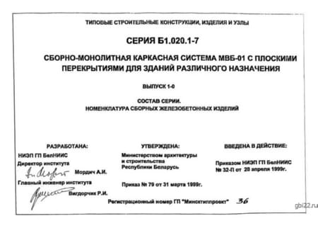 | Название стандарта | Сборно-монолитная каркасная система МВБ-01 с плоскими перекрытиями для зданий различного назначения. |