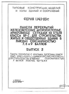 | Название стандарта | Панели перекрытий железобетонные многопустотные, армированные сетками из стали класса Вр-I. Для строительства жилых и общественных зданий в районах сейсмичностью 7, 8 и 9 баллов. |