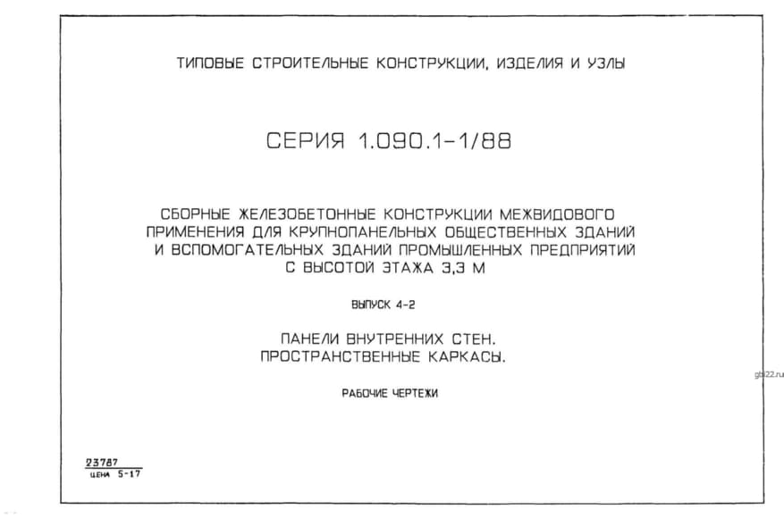 | Название стандарта | Сборные железобетонные конструкции межвидового применения для крупнопанельных общественных зданий и вспомогательных зданий промышленных предприятий с высотой этажа 3,3 м. |